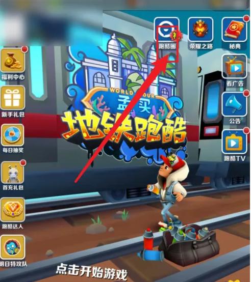 1、首先我们打开游戏,点击游戏主界面上面如图所示的跑酷圈。