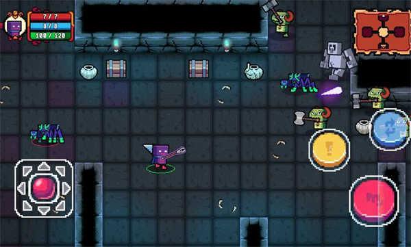 6.在地牢内只有击败房间里的所有敌人才可以继续前进,击败敌人可以获得宝箱,能开出各种装备。
