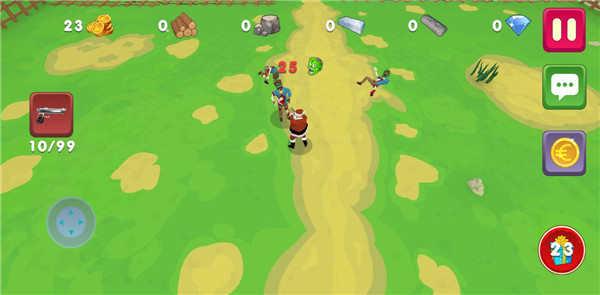 5、左边控制角色的方向,碰到僵尸的话,它会自己攻击,而队友则是ai模式,玩家可以尽情攻击僵尸;