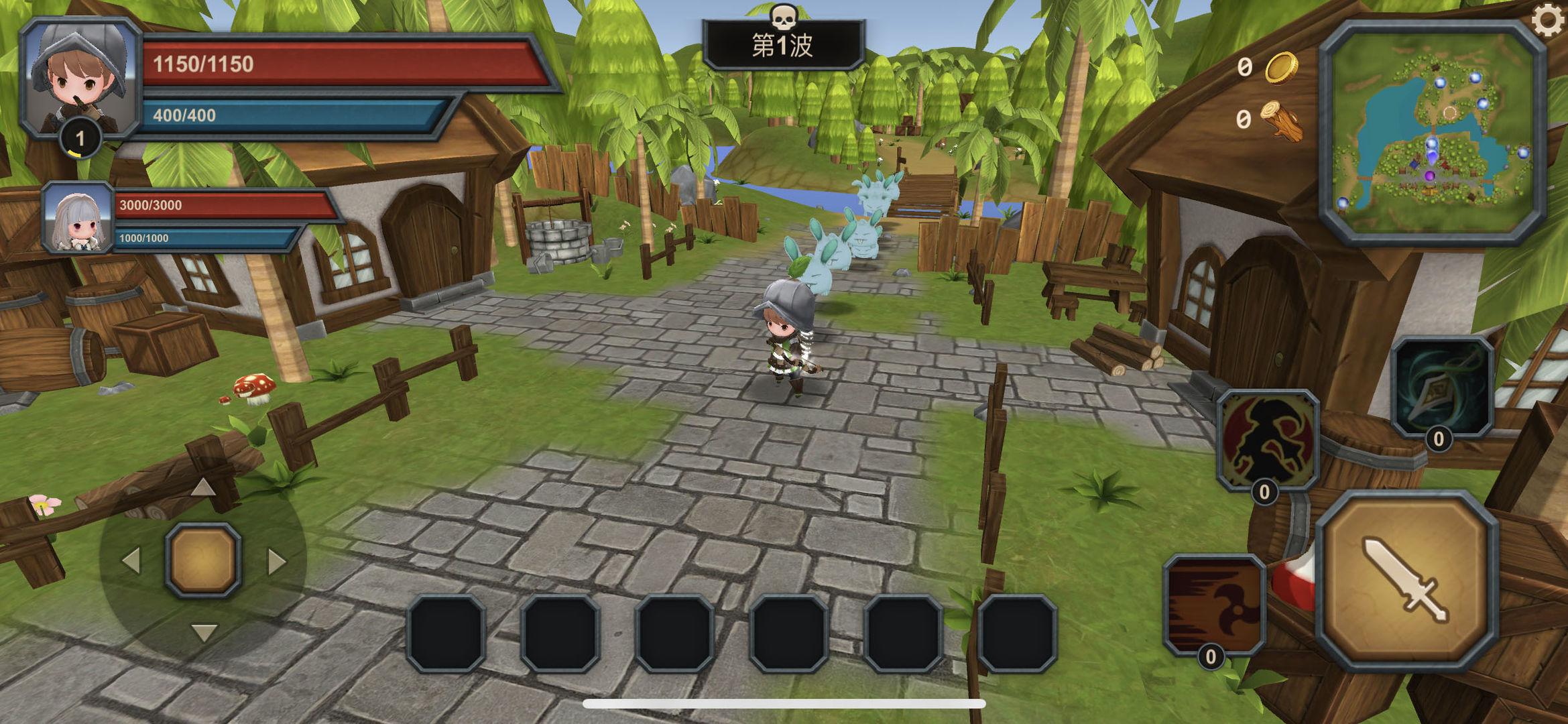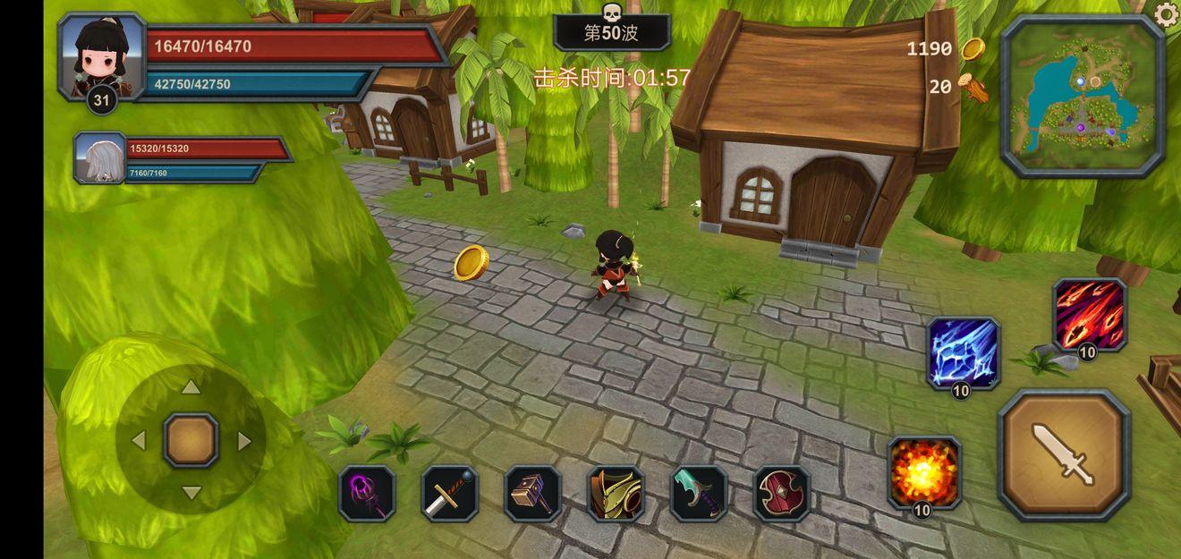 1、战士、法师、弓箭手三种职业选择,挑战50波怪物。