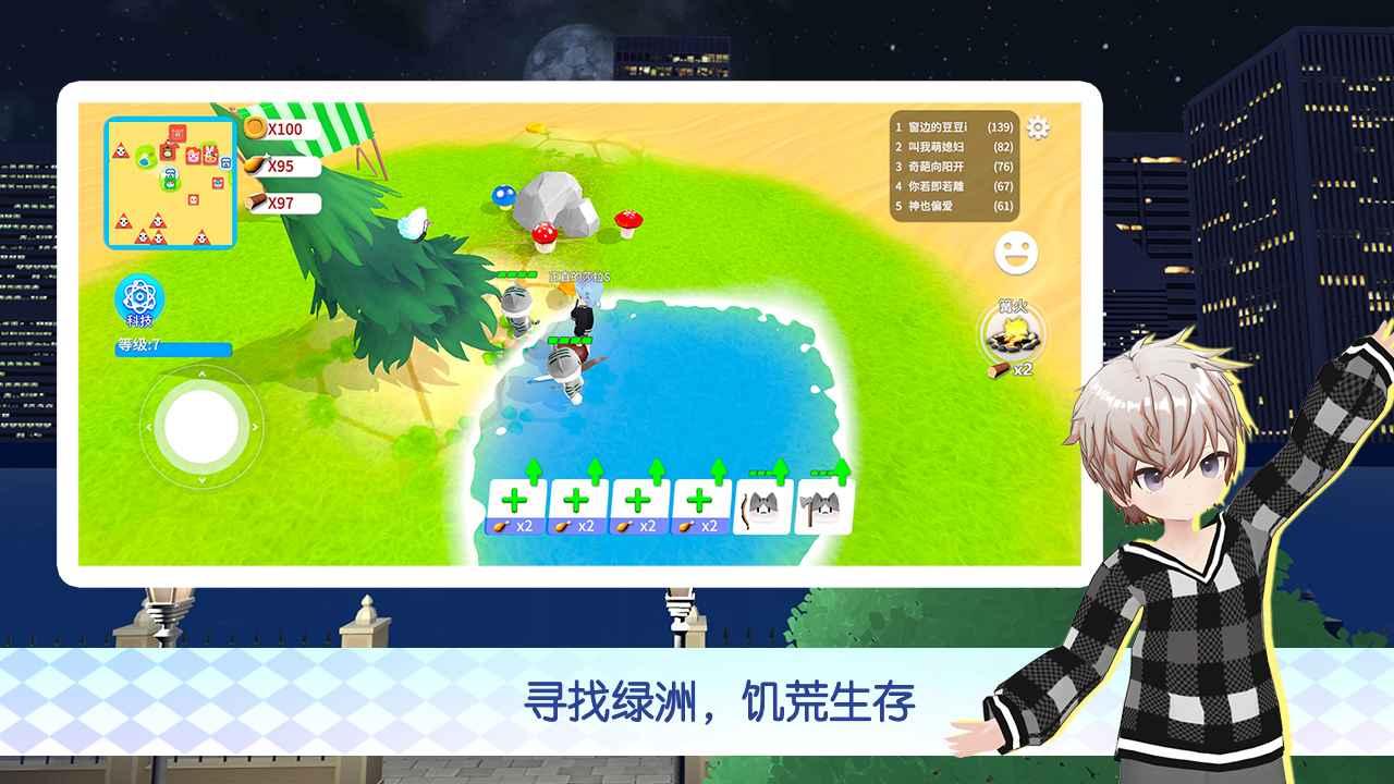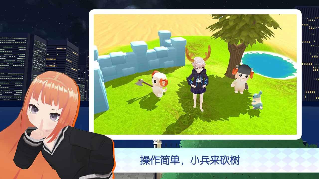 荒漠中寻找绿洲,砍树,挖矿升级自己的小动物部队。