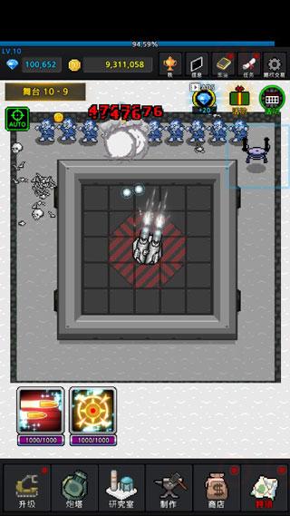 总体来说,塔防游戏的玩法比较简单,主要通过点击强化炮塔的等级,研究其技能和更换更高级的炮塔即可,期间炮塔可进行强化、升星,强化后大大的提升其伤害,收益和炮塔点距离。