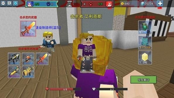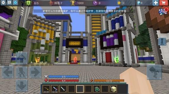 主要玩法:开局小岛上的箱子可以获取幸运方块,击碎幸运方块会掉落装备和道具,利用石头方块搭建通道接近对手并击败他们!