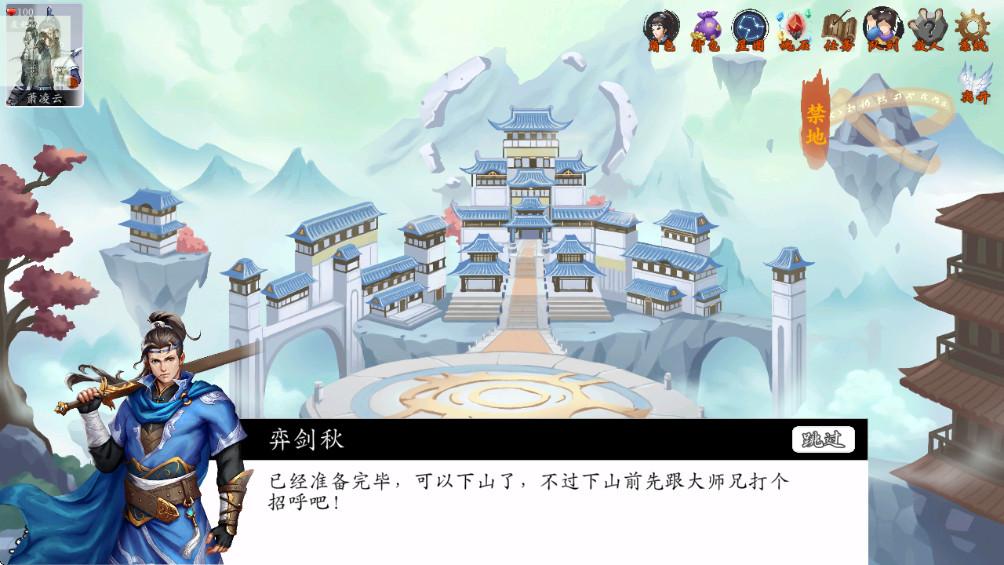 进入游戏与大师兄对话,随后两位同门出现与其对话,增加12好感度,高于100好感度可索要物品(同门的物品在进入游戏时已经固定,打算sl可以重新开局),为了减少开局难度,可以sl一两件增加防御/攻击的装备,这里的装备后面很快就会被替换,不喜欢sl的可以跳过此步骤,索要完四件不同部位(建议副手、上衣、靴子,防御优先)的装备,点击右上角角色穿戴,点击离开出门。