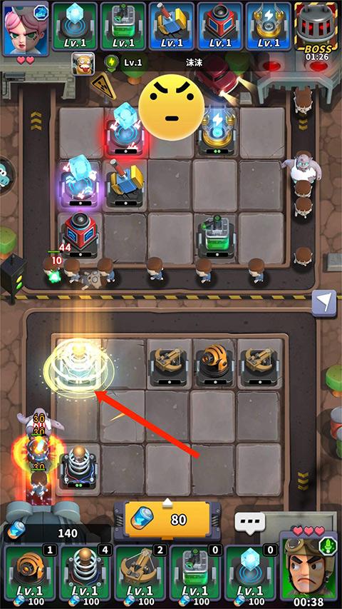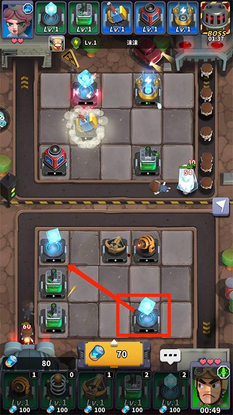 6、将两个相同类型的炮塔进行拖动合成,可以升级成更厉害的炮塔,拥有更高的伤害和更快的射速,从而更快的将僵尸消灭,