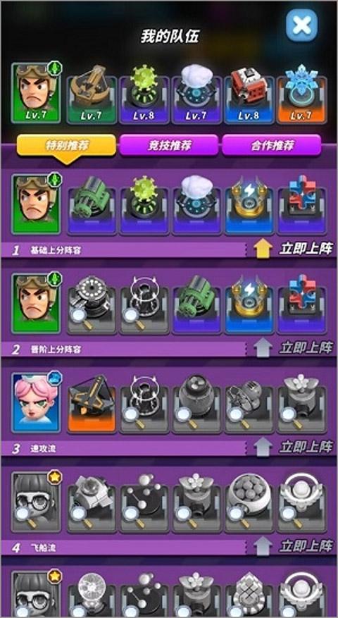 首先,是大家最关心也是最重要的塔的搭配,很多指挥官都在迷茫,这么多塔,到底要怎么样搭配会更好呢,其实,在主页点击阵容推荐,即可看到各种流派,以及竞技合作模式的相关推荐。