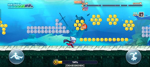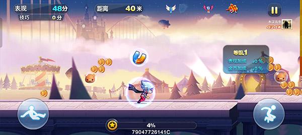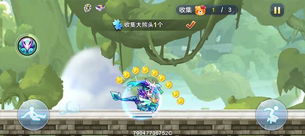 3、进入到游戏之后,有两个按键,分别是滑铲和跳跃的按键,他们都是都是用来躲避游戏中的障碍和拾取金币使用,我们需要尽量跑的更远,获得更高的分数;