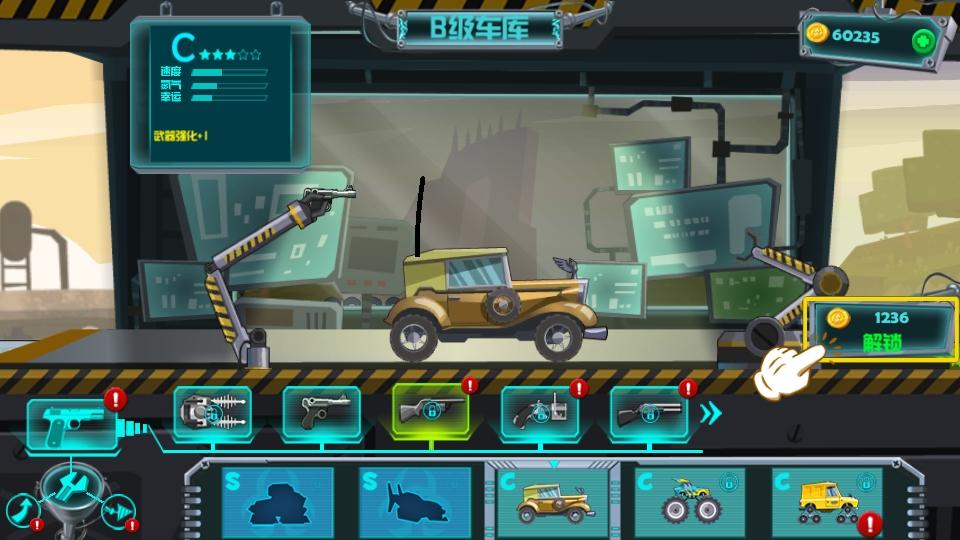 1.开枪射击前方的生化怪物,阻止其撞击你的载具。也不必担心那些躲过子弹的漏网之鱼,别忘记了,你的载具还装有挂件武器和护身宠物,他们也会帮助你抵御来犯之敌。