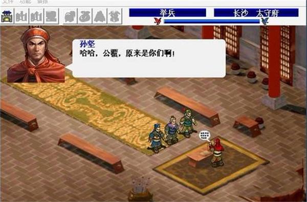 本关很简单,孙坚一出现不像是作者说的那样降防御和士气是孙坚靠近了那个贼首才降他防御,这关一共有5个豆,左边的那个村庄没有豆,不用过去,杀死贼首得太平清领道 。