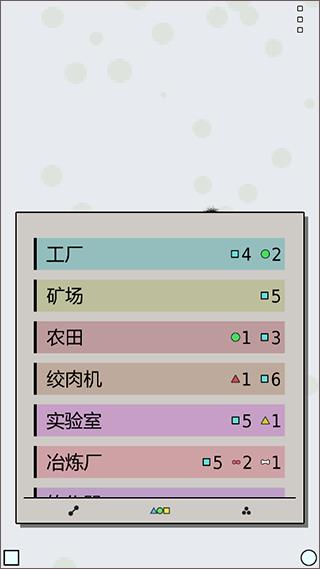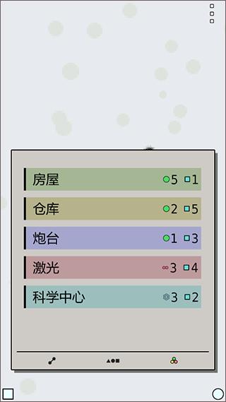 该图中,第一个姑且称它中枢,所有的建筑都必须点击它之后再点击屏幕下方的+才能选择建造,图中的这个面板就是点击+后弹出的,