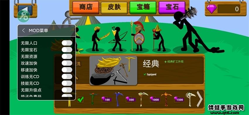 火柴人战争遗产召唤版给大家内置了辅助菜单,有超多的功能可以使用,这是一款策略战斗游戏,玩家要指挥火柴人士兵收集资源进行战斗,培养训练火柴人,提高作战能力,玩法丰富有趣,需要动脑才能赢得胜利。