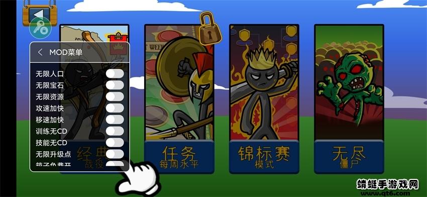 1、下载进入火柴人战争遗产召唤版,点击开始游戏,选择游戏模式;