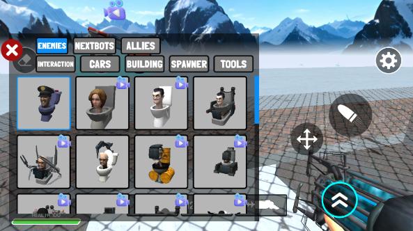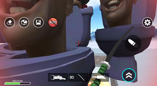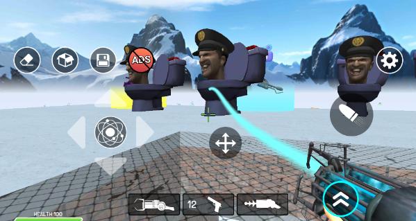3、使用功能枪,能够将你选择的资源放置在沙盒世界中。点击十字箭头图标,可以拖动你瞄准的道具