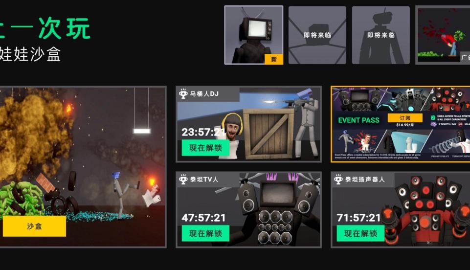 3d布娃娃沙盒游乐场最新版在最新的版本中有马桶人的ip加成,同时也是一款创意十足的沙盒式游戏,玩家可以在游戏中自由发挥想象力,打造属于自己的独特世界。游戏提供了丰富多样的工具和材料,让玩家可以设计和制作各种布娃娃和布景,搭建居住区.花园.商店等各种不同场景。