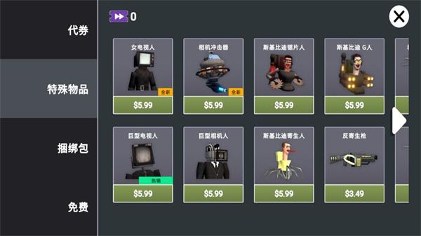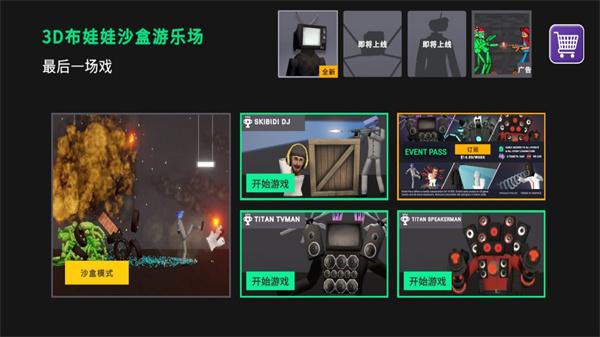 1.进入游戏可以看到沙盒模式.【SKIBIDI DJ】.【TITAN TVMAN】和【TITAN SPEAKERMAN】四种游戏模式可选择