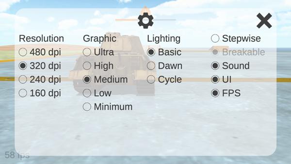 3、游戏内左边按钮控制前进,右边按钮控制左右方向,右下角第一个按钮控制开炮,第二个按钮则让炮塔跟随摄像机旋转。