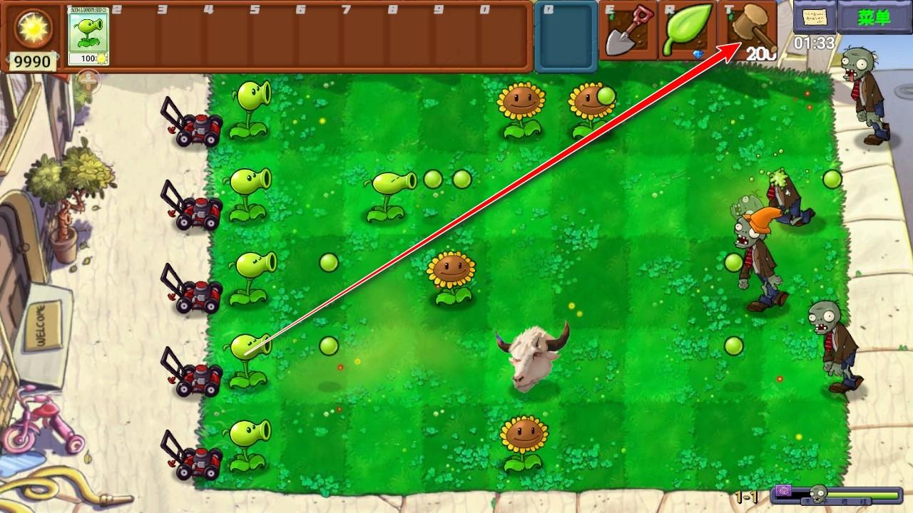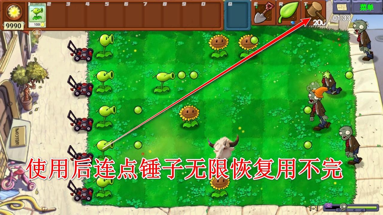 2.用了后再去连点我们的锤子,锤子又恢复成原数量,我们就可以用锤子去锤羊头,避免他给我们捣乱。