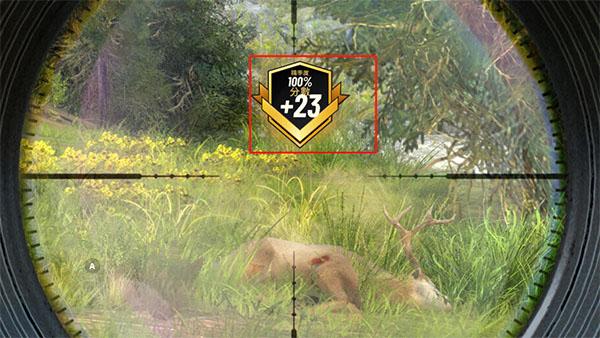 3、在瞄准的过程中,当动物身上出现了绿色的圆圈意味着玩家可以直接射击这个地方,这样可以提高射击准率