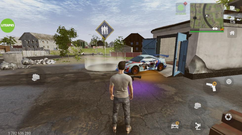 1、进入到火力全开2城市狂热最新版后,点击人物身边的车辆。