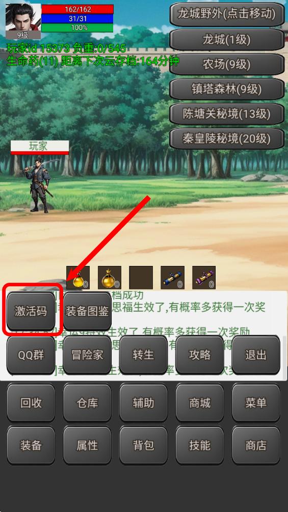 前期先看广告领取元宝,买双倍经验券(双倍经验可叠加)10级前一次广告4元宝和1800金币,10级后一次两万金币,每天最多看20次,(如果看广告没有冒险家经验激活码输入“id666”大退后生效)
