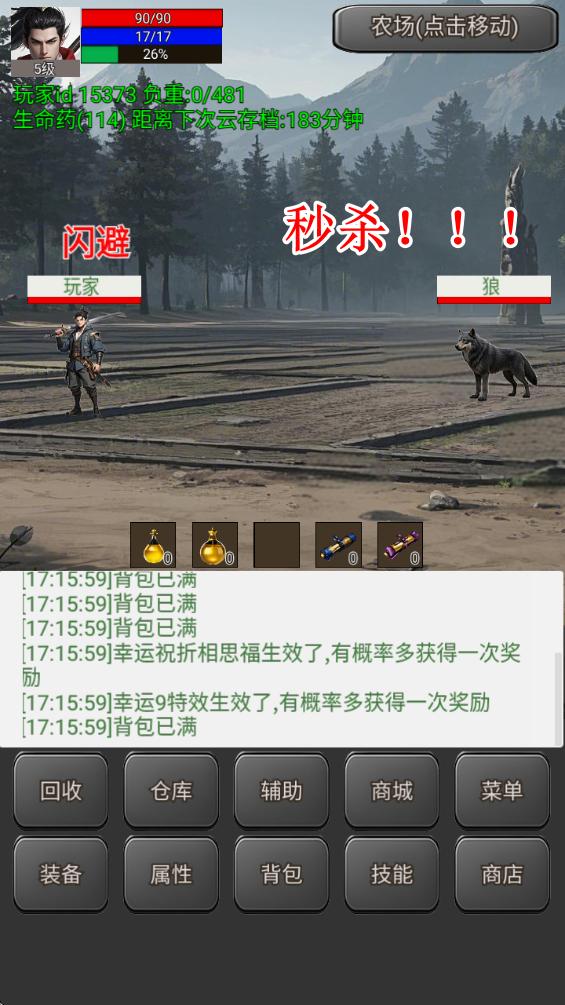 boss:狼王, 掉落 生命药水(越级挑战必备物品)和一刹之剑(5%概率),一刹之剑是9级突破10级的必备物品
