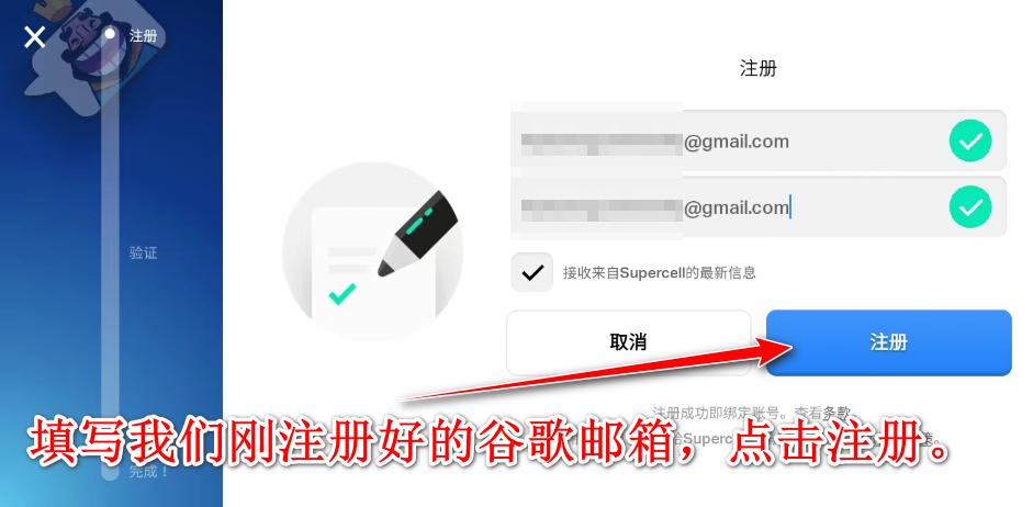 17.填写我们刚注册好的谷歌邮箱,点击注册。