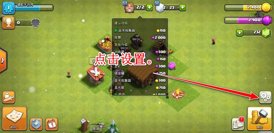 13.注册完成之后进入我们的部落冲突游戏,完成新手任务之后再主页点击右下角的齿轮设置。