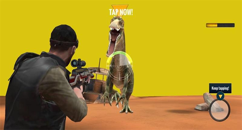 4.恐龙被攻击后会袭击我们,立马对它进行射击。