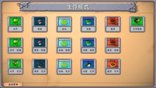 包括白天/黑夜/泳池,迷雾/屋顶的普通和困难关卡,泳池无尽,塔防无尽。