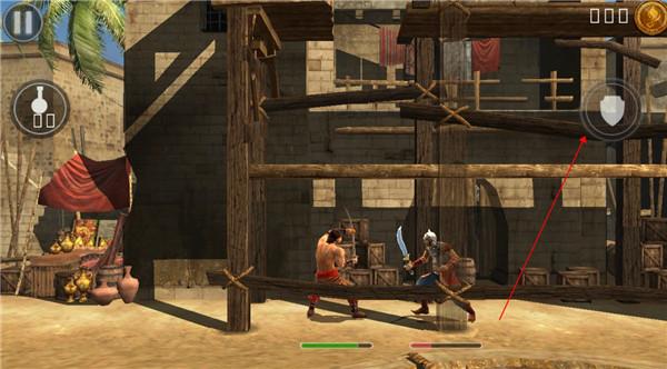 7、点击右边盾牌按钮可以进行防御,敌人处于防御状态的时候不要攻击,不然会被直接格挡反击