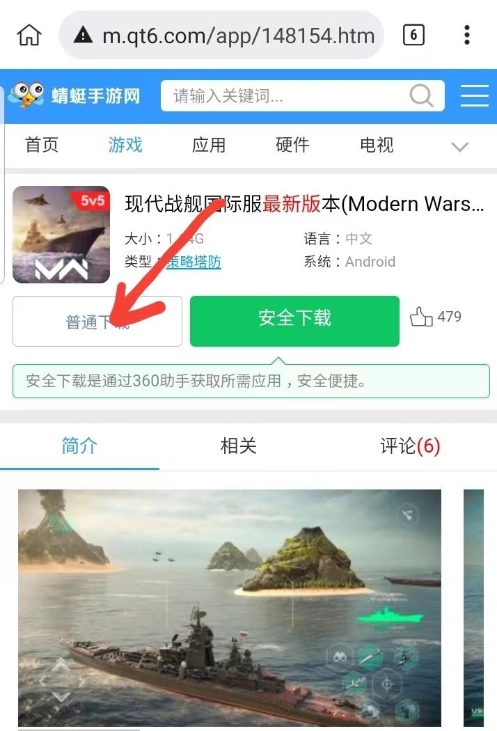 在蜻蜓手游网中搜索现代战舰国际,找到页面点击普通下载,等待下载完成安装即可获得最新版的现代战舰国际服安装包,安装即可游玩