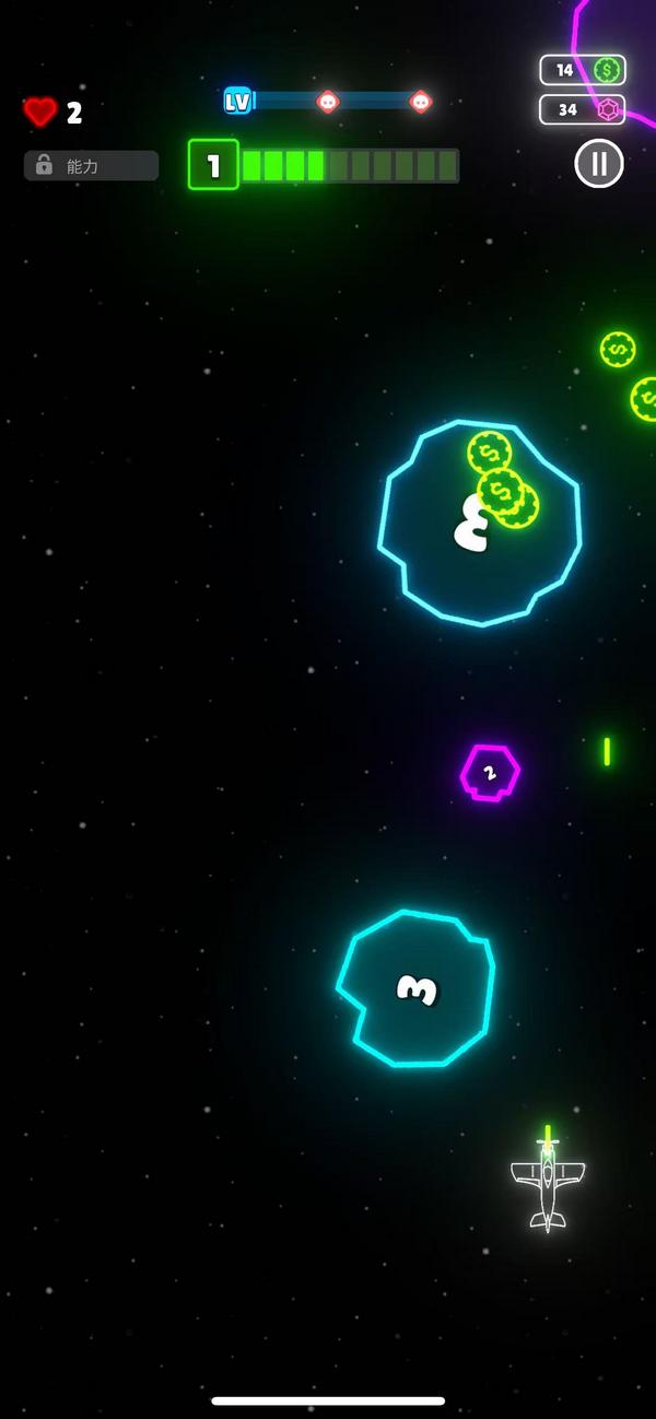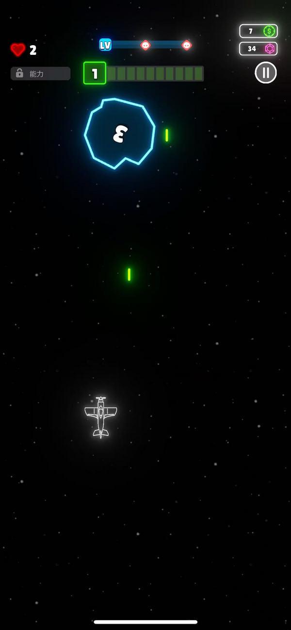 2.射击到方块上的时候它会进行分裂,直到变成非常小的一个击碎才会消失。