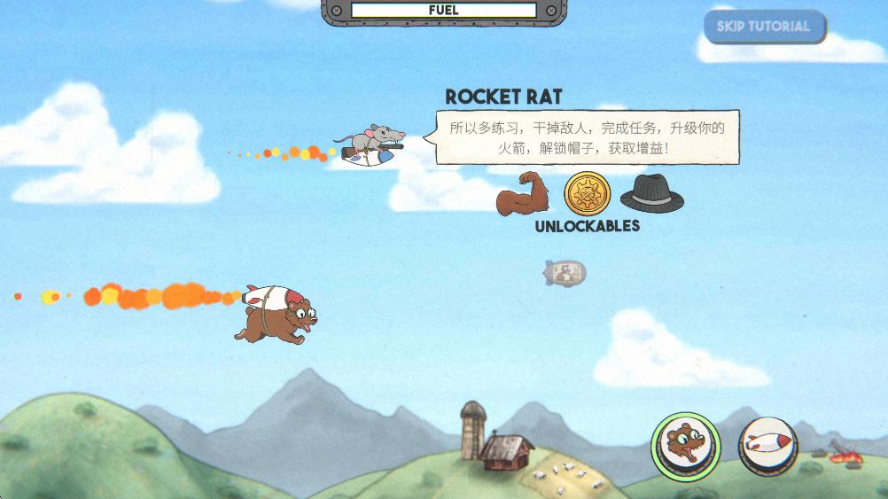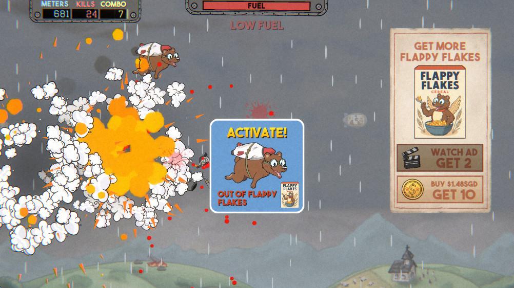 火箭熊是一款融合了荒诞幽默与疯狂空战元素的飞行射击游戏,你将扮演一只装备了喷气式推进器的熊,穿梭于空中展开极限空战,游戏将你带入一个超现实的世界,化身这只英勇的喷气熊,用各种奇特的武器和技能征服敌人。在每场战斗中,你都可以体验到来自不同道具和强化系统带来的战术变化,利用策略和资源扭转战局。