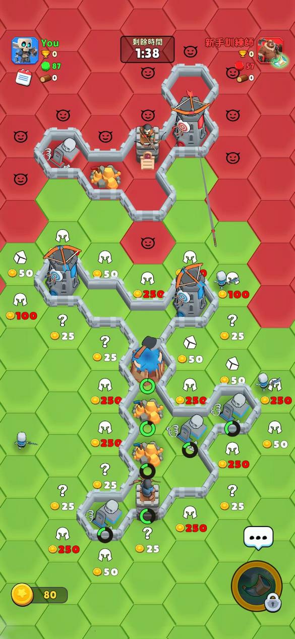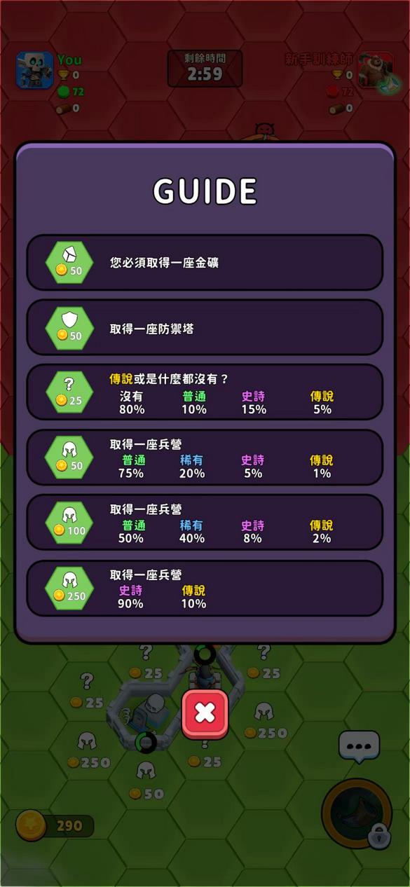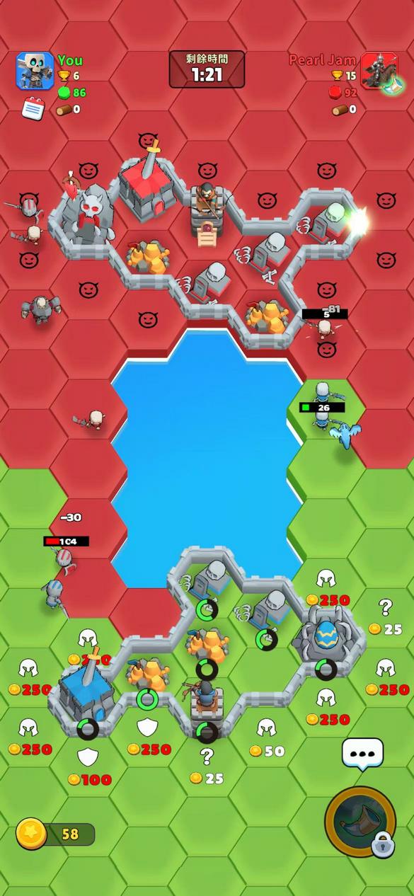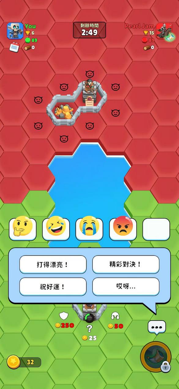 1.花费金币翻转六边形方块,并攻击敌方获得更多区域。