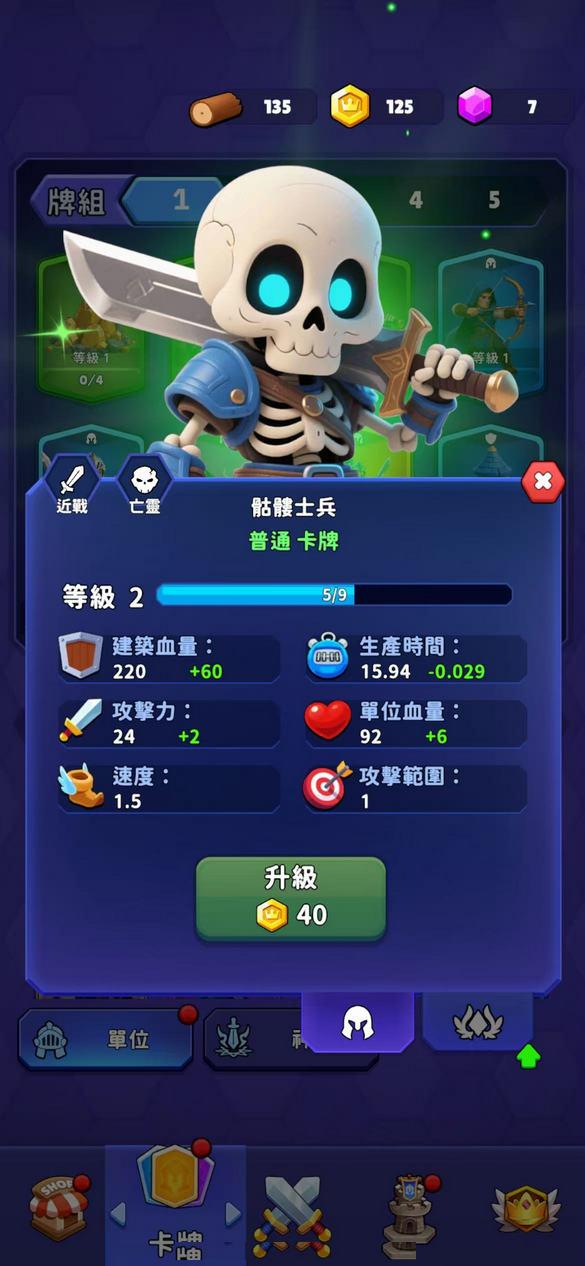3.收集普通、稀有、史诗乃至传奇级别的卡牌,每张卡牌都代表着一种单位或技能。