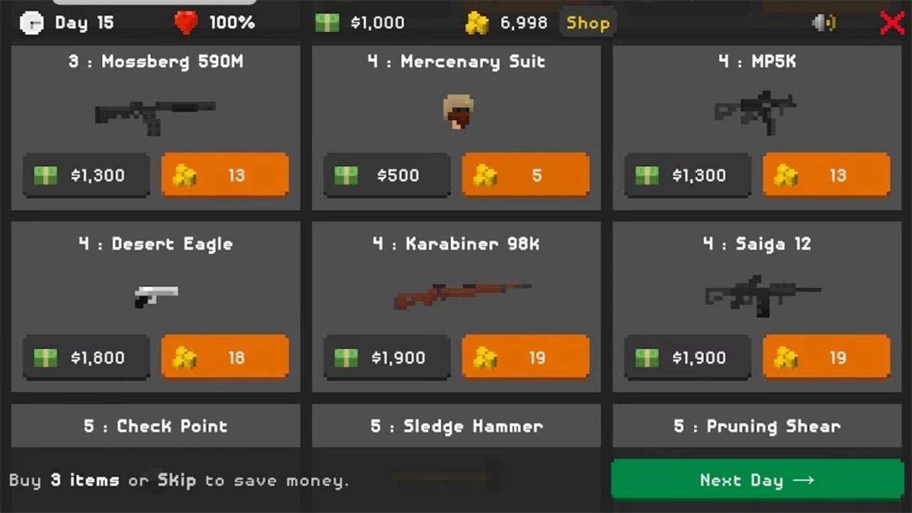 6、对于外面大量的僵尸,还可以在商店购买足够的物资能轻松获胜。