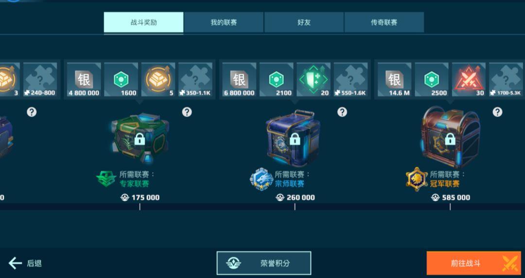 指挥官可以在荣誉积分达到对应数值后,前往联赛中心领取“战斗奖励”,进阶联赛排名可以获得金币奖励。