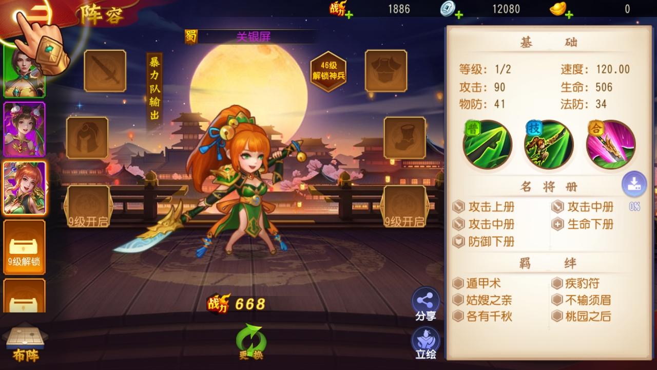 3.靠活动来获得关银屏,接着把全武将回收了,单独上阵这个武将,回去开第一步送的武将,这个也是关银屏的,此时就算卡将成功了。