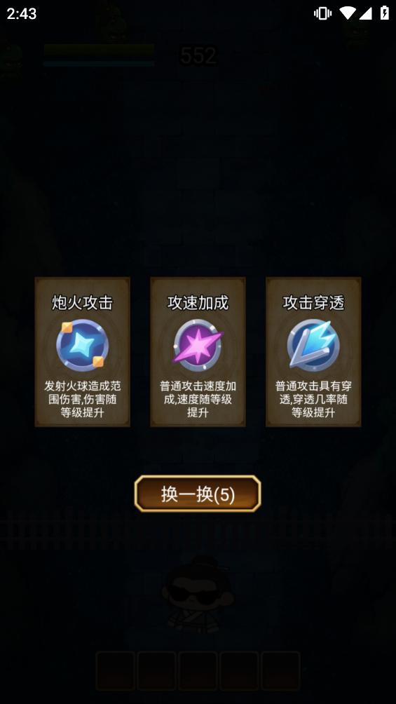 3.当经验达到足够之后,就可以获得技能,选择其中一项帮助你进行战斗。