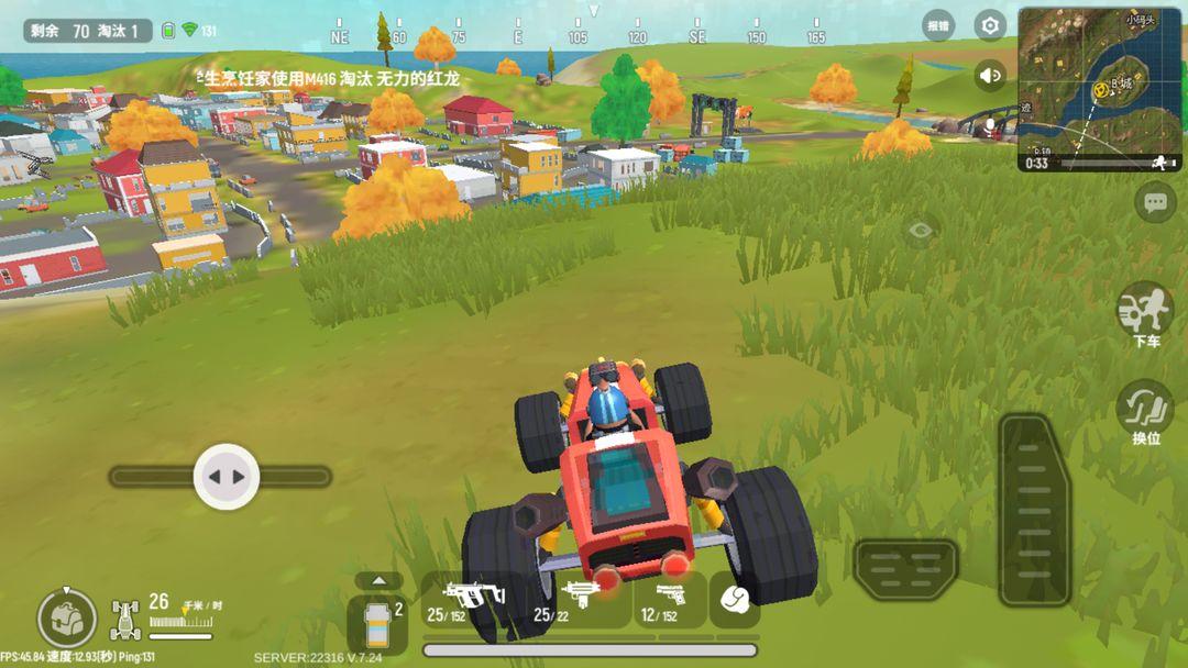 在游戏内,单排被载具撞到就直接淘汰,多排则是直接击倒。所有车都能漂在水面上。
