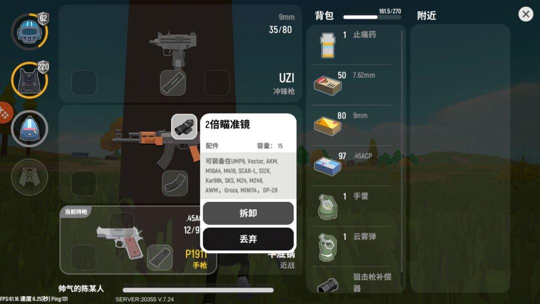 配件能够加强枪的效能。能用到的主要是弹夹和倍镜。还有一些其他的配件。(备注:配件有限制条件:如冲锋枪补偿器不可以给狙击枪用。)