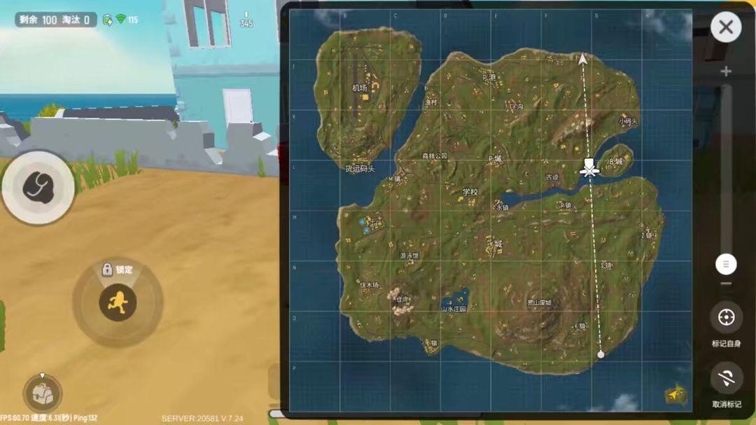游戏进行一段时间以后,地图随机刷安全区,过几分钟会有一片蓝色的毒替代安全区外的地方,在毒内会持续掉血,于是要求玩家在一定时间内跑到安全区内。