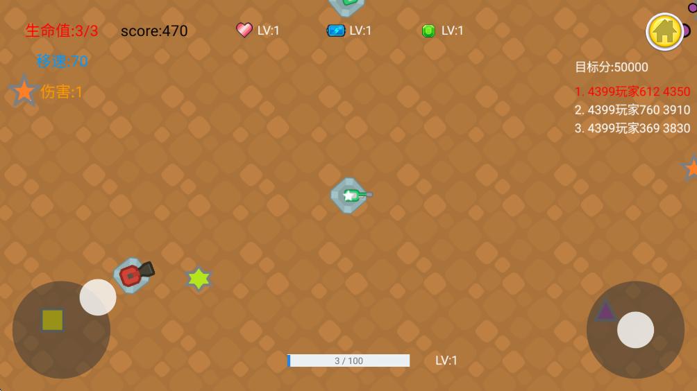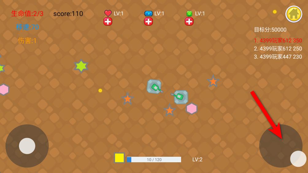 4.右下角移动摇杆可以转动你的炮塔朝向。