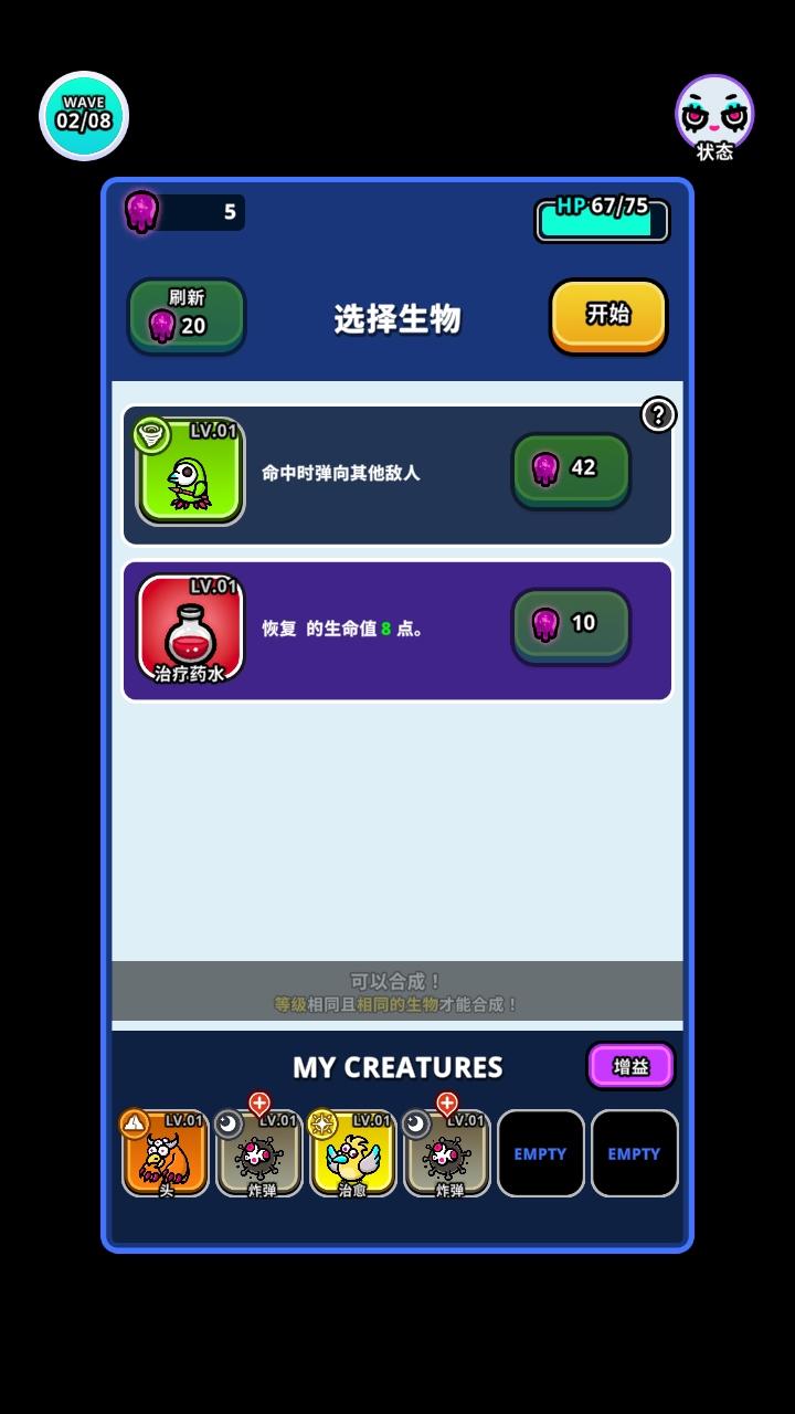 5.击杀完一定敌人后捡取地上钱币后可以随机选择技能。