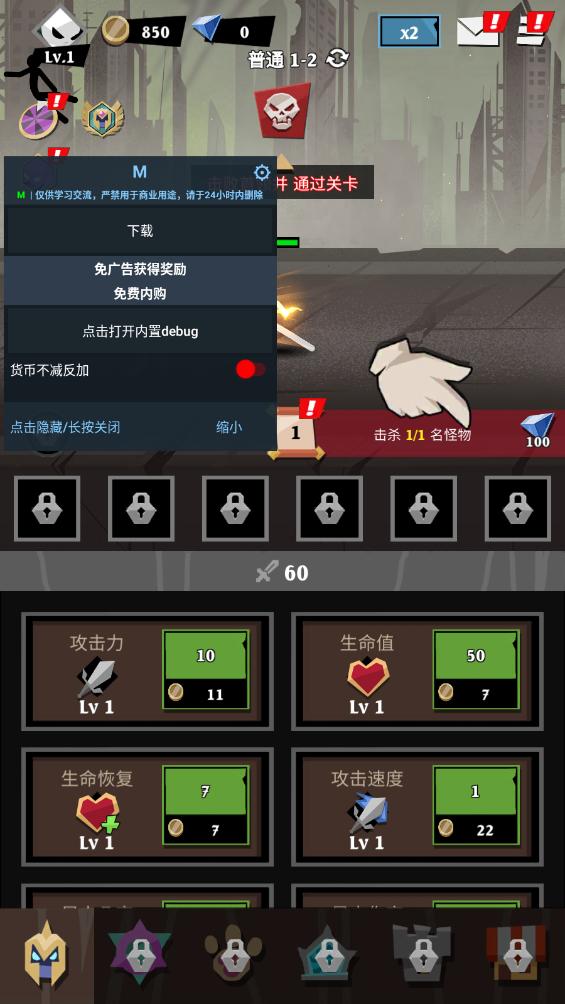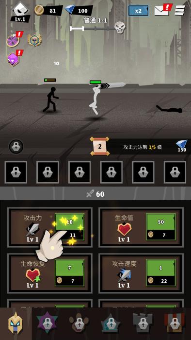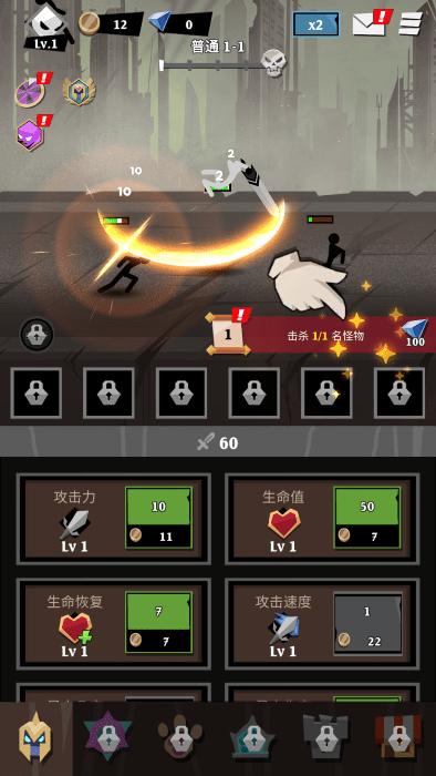 3.下面就是强化自己的属性,战胜更多的敌人。