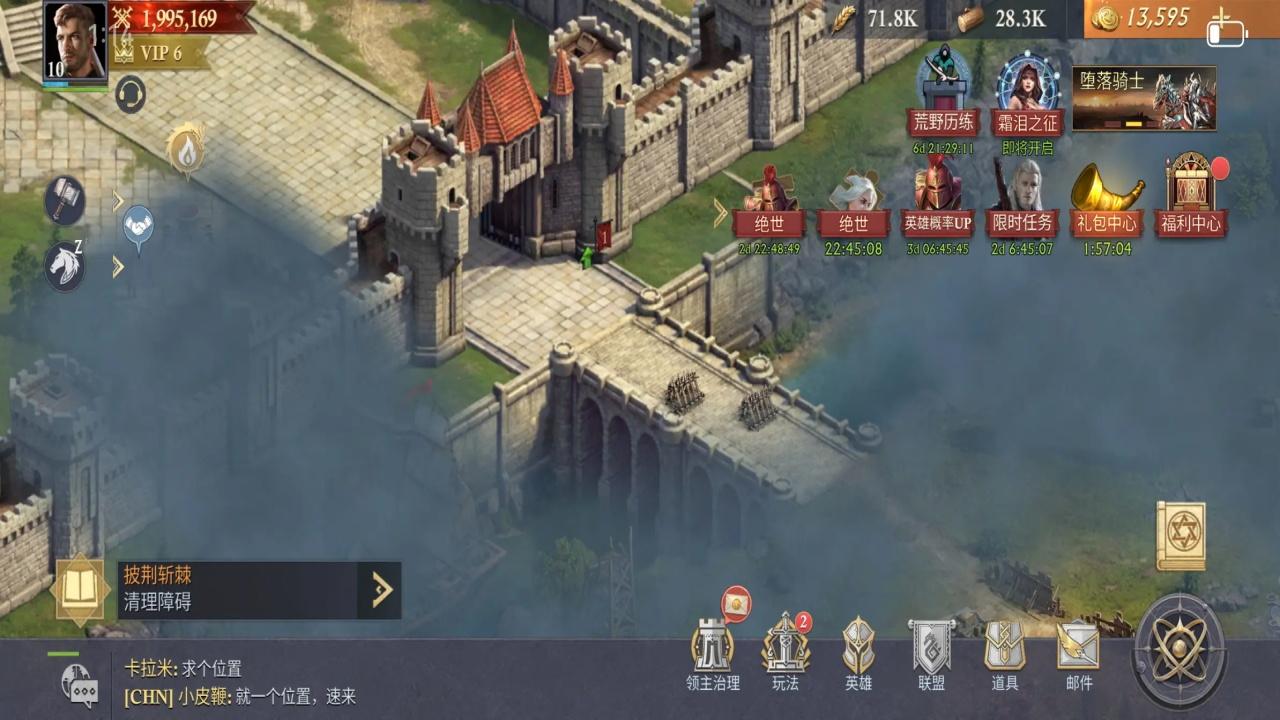 除了主画面左下方提醒的主线任务之外,还有成长任务跟史诗任务可以解,成长任务在右下方任务打开就可以看到,史诗任务在主线任务提醒的上方,解主线任务的同时不要忘记解成长任务跟史诗任务,都可以拿到不少的物资奖励跟领主经验。