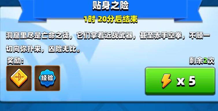 贴身之险:洞窟里尽是亡命之徒,它们拿着近战武器,甚至赤手空拳,不顾一切向你扑来,凶险无比。关卡奖励为金币和人物经验。
