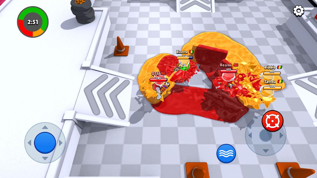 染色派对是一款充满创意与竞技精神的多人对战射击游戏,玩家将操控一支油漆枪,参与一场刺激的对抗,在丰富多彩的战场上与其他玩家展开激烈的争夺,你需要在涂色的同时避免敌人对你的领地进行侵占,战场上的每一次成功涂抹都会影响最终的胜负,玩家不仅要快速有效地涂色,还需要灵活躲避敌人的攻击,并利用各种地图元素来形成战术优势。