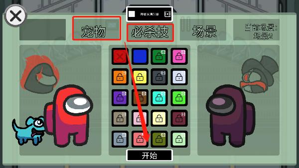 4、开游戏开始之前,我们可选择携带宠物和必杀技,场景在默认情况下为随机,玩家也可手动设置锁定地图