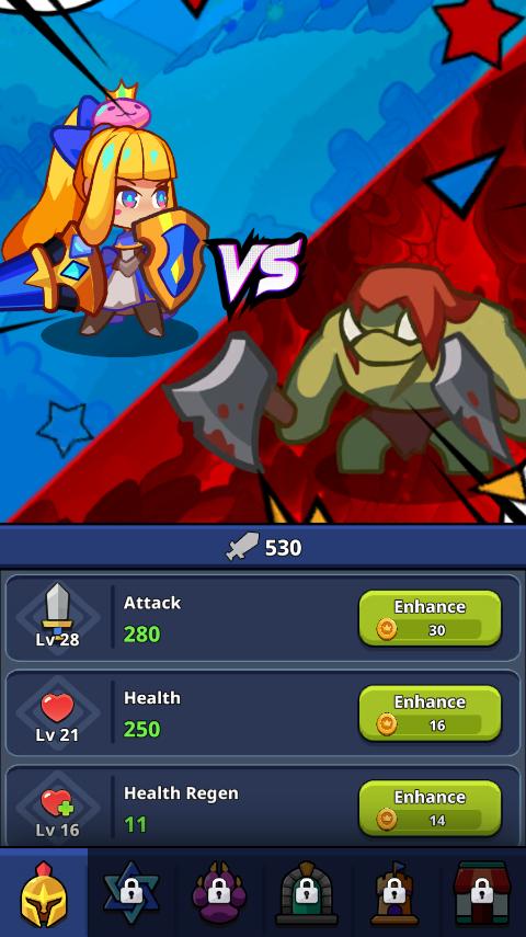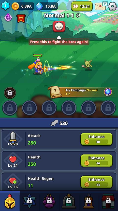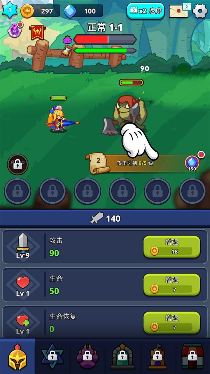 1.打开进入开始游戏,游戏自动挂机,你只需要点击下方的绿色按钮使用金币给角色攻击力进行升级即可。